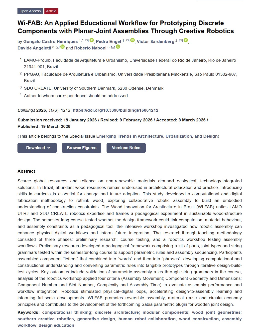 . Wi-FAB: An Applied Educational Workflow for Prototyping Discrete Components with Planar-Joint Assemblies Through Creative Robotics